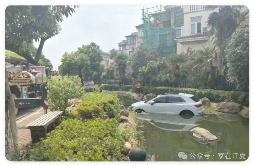 • 8.事發江夏一小區,一轎車直沖小區內池塘...
